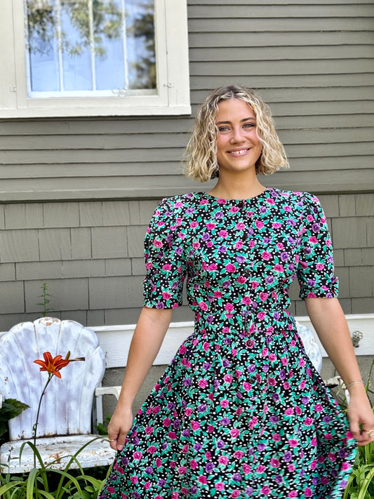 70’s Vintage Vibrant Floral Garden Dress