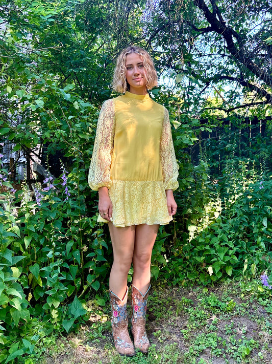 Vintage 70’s Yellow Tie Dress